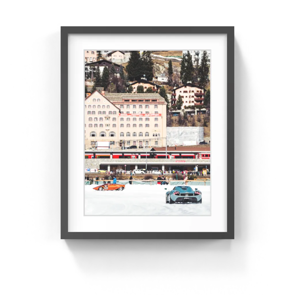 Ice Drift is a captivating luxury framed fine art piece showcasing the iconic St. Moritz ice drift car show, where rare automobiles drifting on a frozen lake. This artwork captures the fusion of power, precision, and winter enchantment, appealing to collectors who appreciate the unique blend of automotive mastery, exhilarating performance, and the breathtaking beauty of the frozen landscape. A testament to adrenaline-fueled artistry.